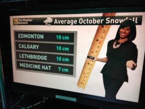 - I’m saying it with a smile… #yeg #yyc #yxh #yql you could all see more snow just TOMMOROW than you normally see the whole month!! Welcome to October? Tune in to see more tonight @weathernetwork